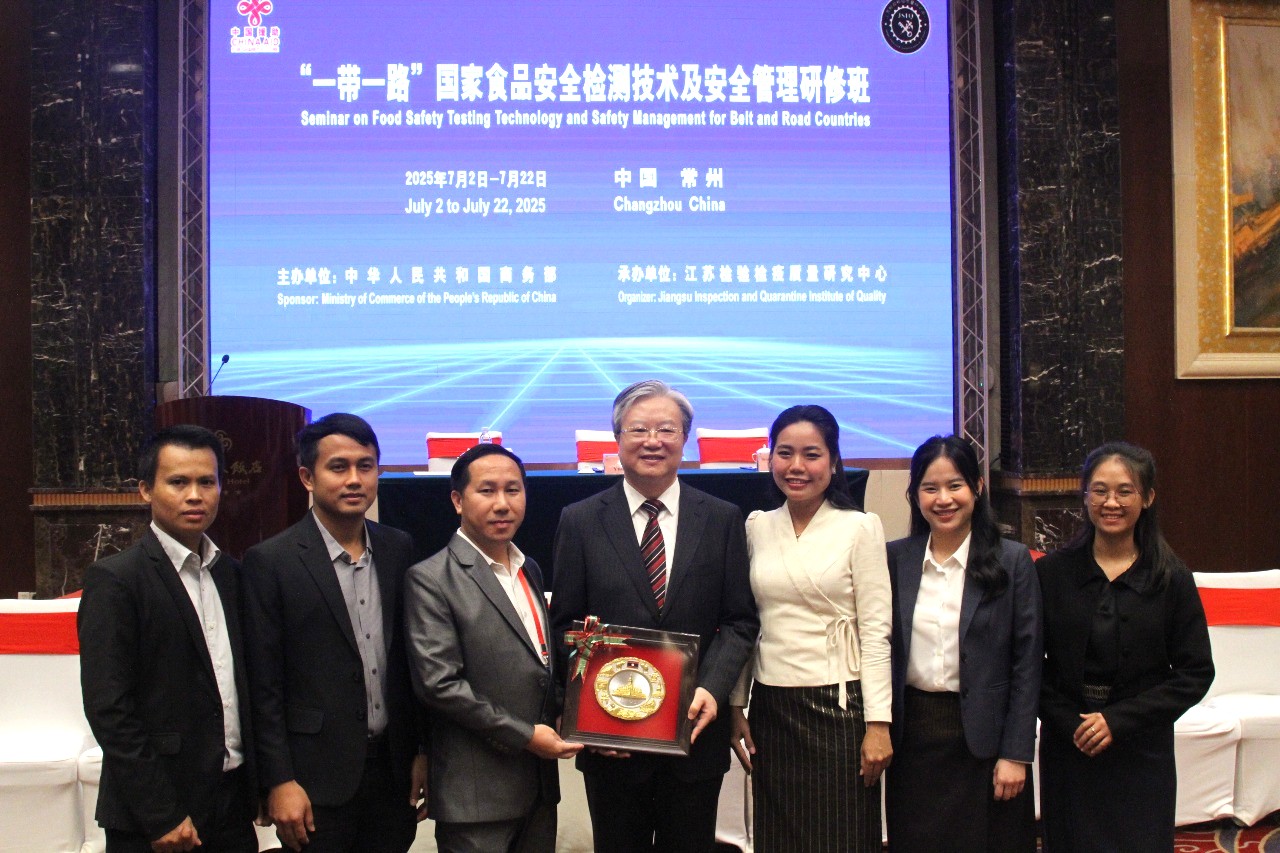 ທ່ານ ຄໍາໄຊ ທ່າວ ຮອງຫົວໜ້າຂະແໜງວິໄຈອາຫານ, ສູນວິໄຈອາຫານ ແລະ ຢາ ໄດ້ເຂົ້າຮ່ວມ ຝືກອົບຮົມເຕັກນິກການຄຸ້ມຄອງຄວາມປອດໄພ ແລະ ການກວດສອບຜະລິດຕະພັນອາຫານ ສຳລັບບັນດາປະເທດໜື່ງແລວ - ໜື່ງເສັ້ນທາງ ໃນລະຫ່ວາງວັນທີ 02-22 ກໍລະກົດ 2025, ທີ່ແຂວງຈຽງຊູ, ສປ ຈີນ ເຊິ່ງໄດ້ຮັບການສະໜັບສະໜູນດ້ານງົບປະມານຈາກກະຊວງການຄ້າ ແລະ ຈັດຕັ້ງປະຕິບັດໂດຍ ສະຖາບັນກວດກາ ແລະ ກັກກັນຄຸນນະພາບແຂວງຈຽງຊູ, ສາທາລະນະລັດ ປະຊາຊົນຈີນ. ມີຜູ້ເຂົ້າຮ່ວມທັງໝົດ 33 ທ່ານ (ຍິງ 20 ທ່ານ) ມາຈາກ 10 ປະເທດ (ສປປ ລາວ, ຄິວບາ, ບຣາຊີຣ, ແກມເບຍ, ຕີໂມ ເລສເຕ, ອິນໂດເນເຊຍ, ອາຟຣີກາໃຕ້, ຊູດານໃຕ, ໄນຈີເລຍ ແລະ ອູກັນດາ), ສໍາລັບ ສປປ ລາວ ແມ່ນເຂົ້າຮ່ວມ 6 ທ່ານ ຈາກ ກະຊວງສາທາລະນະສຸກ 3 ທ່ານ (ກົມອາຫານ ແລະ ຢາ, ສູນວິໄຈອາຫານ ແລະ ຢາ ແລະ ກອງກວດກາອາຫານ ແລະ ຢາ) ແລະ ກະຊວງອຸດສາຫະກໍາ ແລະ ການຄ້າ 3 ທ່ານ ໂດຍການເຂົ້າຮ່ວມເປັນປະທານເປີດປີດຂອງທ່ານ ໄດ໋ ຢູນຮຸຍ ຫົວໜ້າສະຖາບັນກວດກາ ແລະ ກັດກັນຄຸນນະພາບແຂວງຈຽງຊູ, ສປ ຈີນ. ການຝຶກອົບຮົມໄດ້ຮັບຟັງການບັນຍາຍ ຈາກພາກສ່ວນທີ່ກ່ຽວຂ້ອງຂອງວຽກງານດັ່ງກ່າວ, ສົນທະນາແລກປ່ຽນ ແລະ ຢ້ຽມຢາມບັນດາບໍລິສັດຜະລິດອາຫານຈໍານວນໜຶ່ງ.